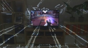Microsoft entend aller encore plus loin dans l’immersion avec son concept d’Illumiroom présenté lors du CES 2013, qui propose au joueur d’étendre son expérience du jeu au-delà de l’écran, en le projetant sur toute la surface tridimensionnelle d’une pièce. Et oui, qui dit immersion dit disparition progressive des écrans qui confinent et marquent une rupture dans l’expérience…
