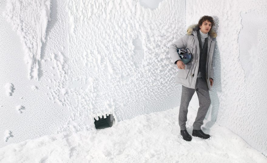 This winter, the American outerwear brand Woolrich inaugurated a very special flagship store in Milan, with an immersive extreme weather experience room, where customers can try out parkas in freezing temperatures such as minus 20°C.
