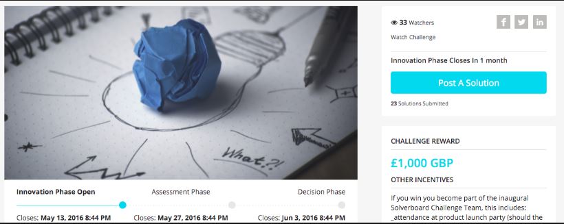 C’est le pari qu’a fait l’entreprise Solverboard, en offrant aux collaborateurs de ses entreprises clientes un espace pour développer leurs idées. En d’autres termes, il s’agit d’un outil de management des idées, qui permet aux entreprises, quelle que soit leur taille, d’identifier, capturer et résoudre les challenges de leurs collaborateurs. Chacun est invité à définir un challenge, à le partager à son réseau (son équipe, l’ensemble de l’entreprise et/ou même des experts extérieurs). La plateforme suggère alors la création d’une communauté adaptée, selon les profils, qui pourra travailler en équipe sur une solution. Toutes les solutions proposées via l’outil sont ensuite scorées et évaluées par la communauté, pour choisir l’idée gagnante, qui avancera dans le processus. Processus intégrant 3 phases : innovation, évaluation et décision.