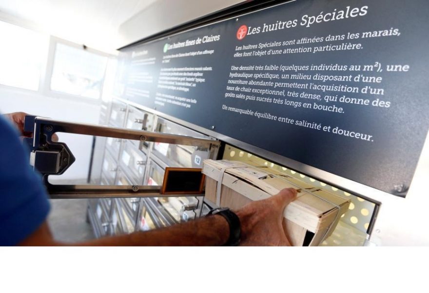 Les ostréiculteurs de l’Huitrière de Ré à Ars ont mis en place un distributeur automatique de bourriches d’huîtres. Que les accros se réjouissent : la machine fonctionne 24h sur 24, 7 jours sur 7. Les propriétaires ont ainsi installé dans un local sur leur exploitation, un mur de casiers métalliques dans lesquelles se trouvent en tout est pour tout, 27 boîtes stockant les coquillages, cela allant des deux douzaines de fines n°3 (15,30) jusqu’aux 50 spéciales n°3 (43,50).